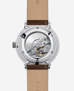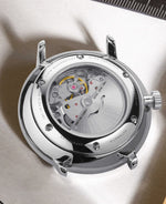 The exhibition case back allows you to watch the rotor as it swings, bringing the mechanical movement to life. Powered by this, the second hand glides smoothly over the classically designed dial. The case, crafted from polished 316L stainless steel, completes the elegant look.