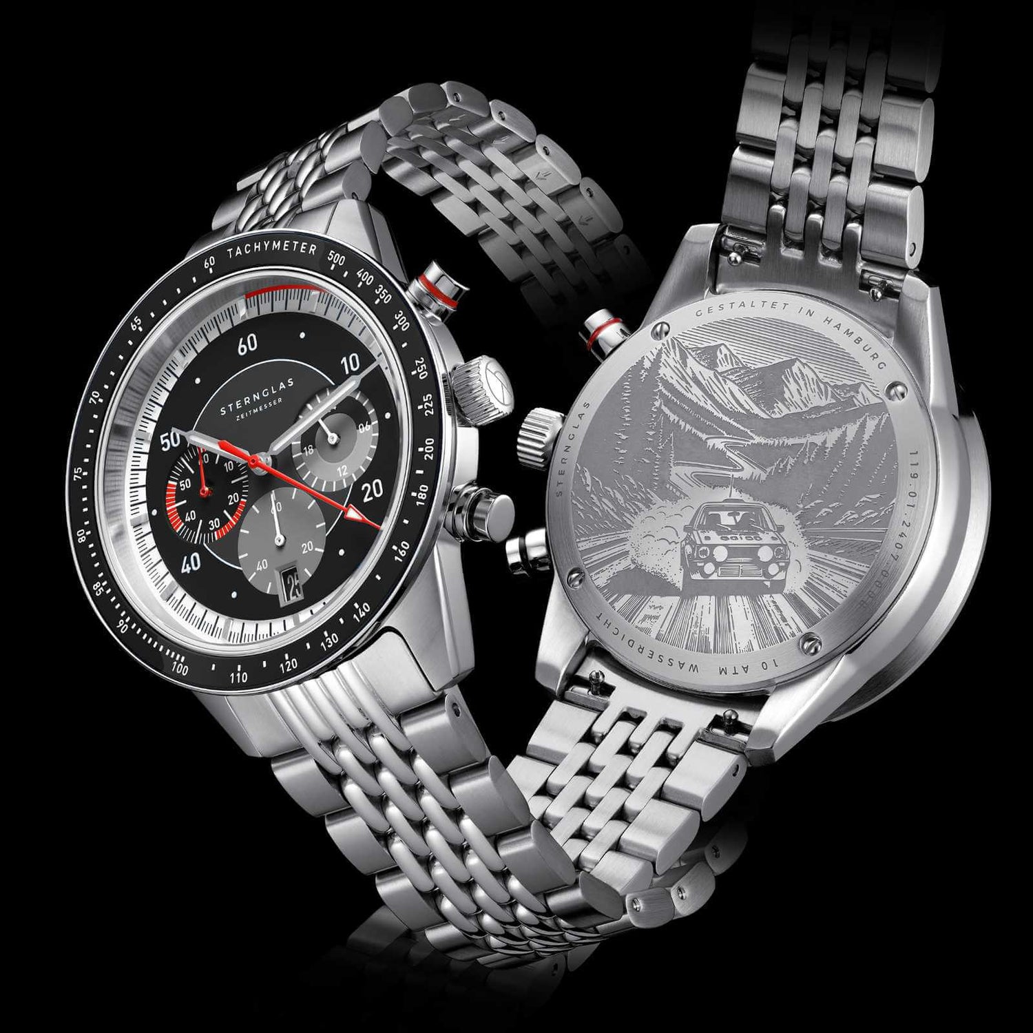 | Functions | Date, Stopping Function, Tachymeter scale, Small Second, 24-hour-Display |