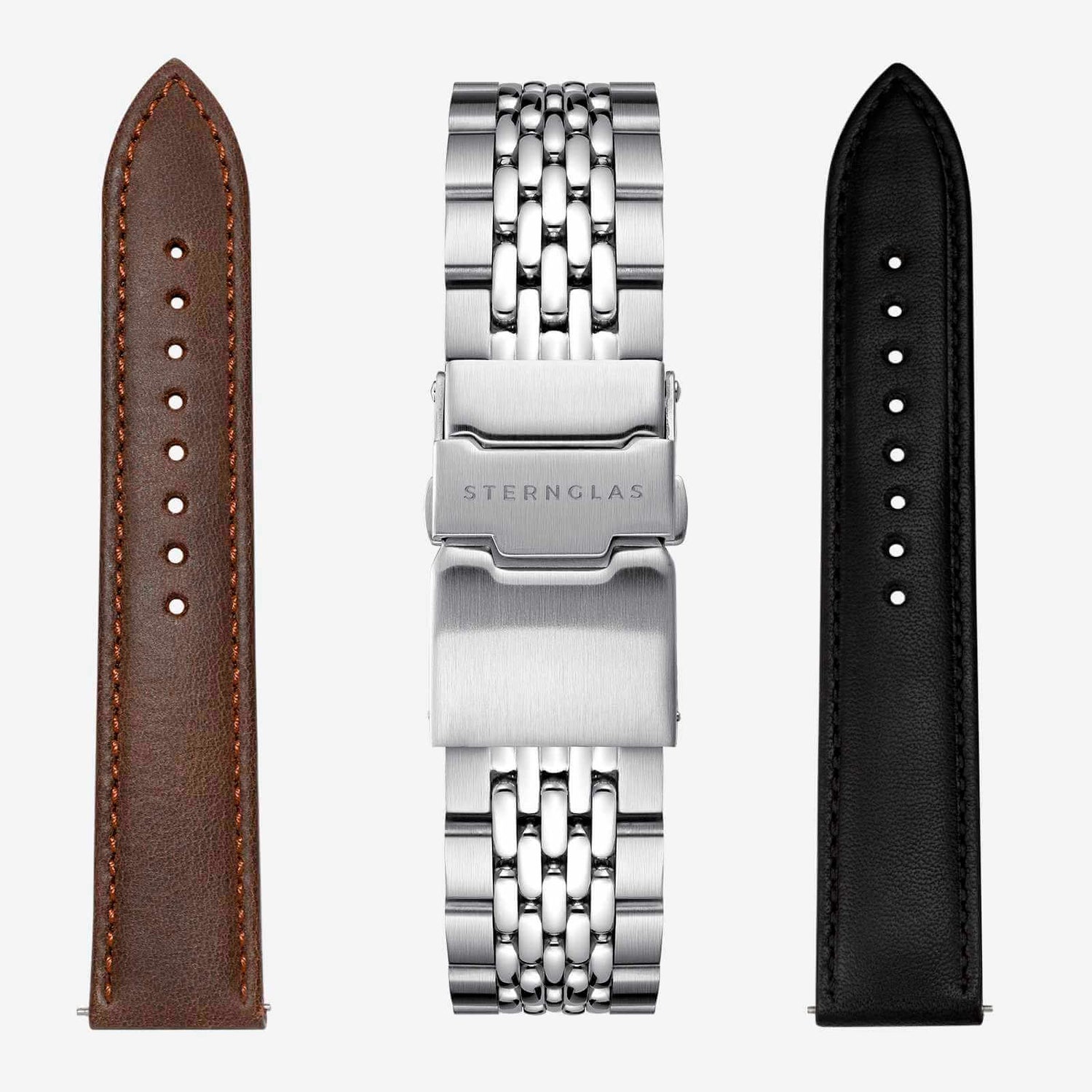 Modena 20 black, Modena 20 dark brown (cowhide leather), metal strap
