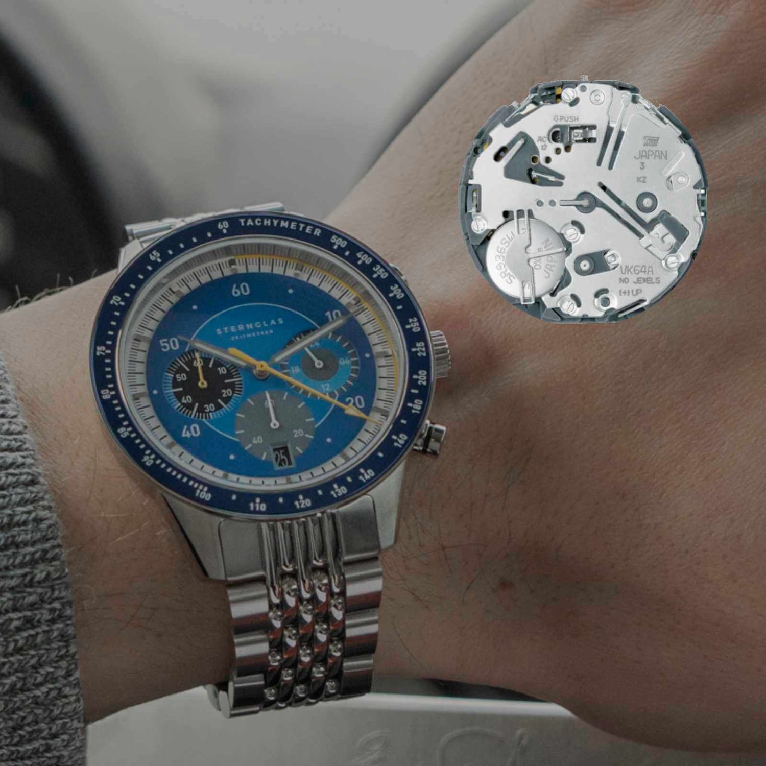 | Functions | Date, Stopwatch, Tachymeter scale, Small Second, 24-hour-Display |